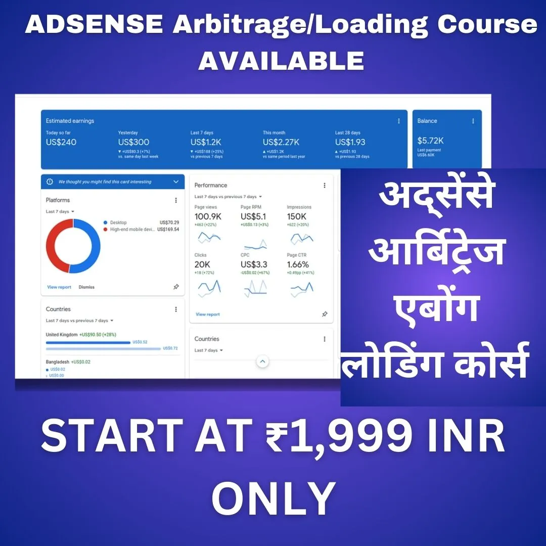 Adsense Arbitrage Course ek online class hai jisme seekhate hai log kaise low-cost traffic se high-profit ads ke through paisa kamaya ja sakta hai. Website banao, ads lagao, aur traffic manage karo to earn money online.